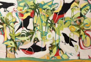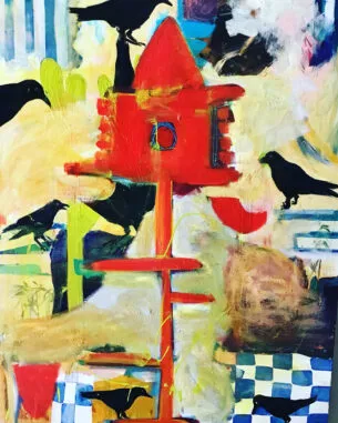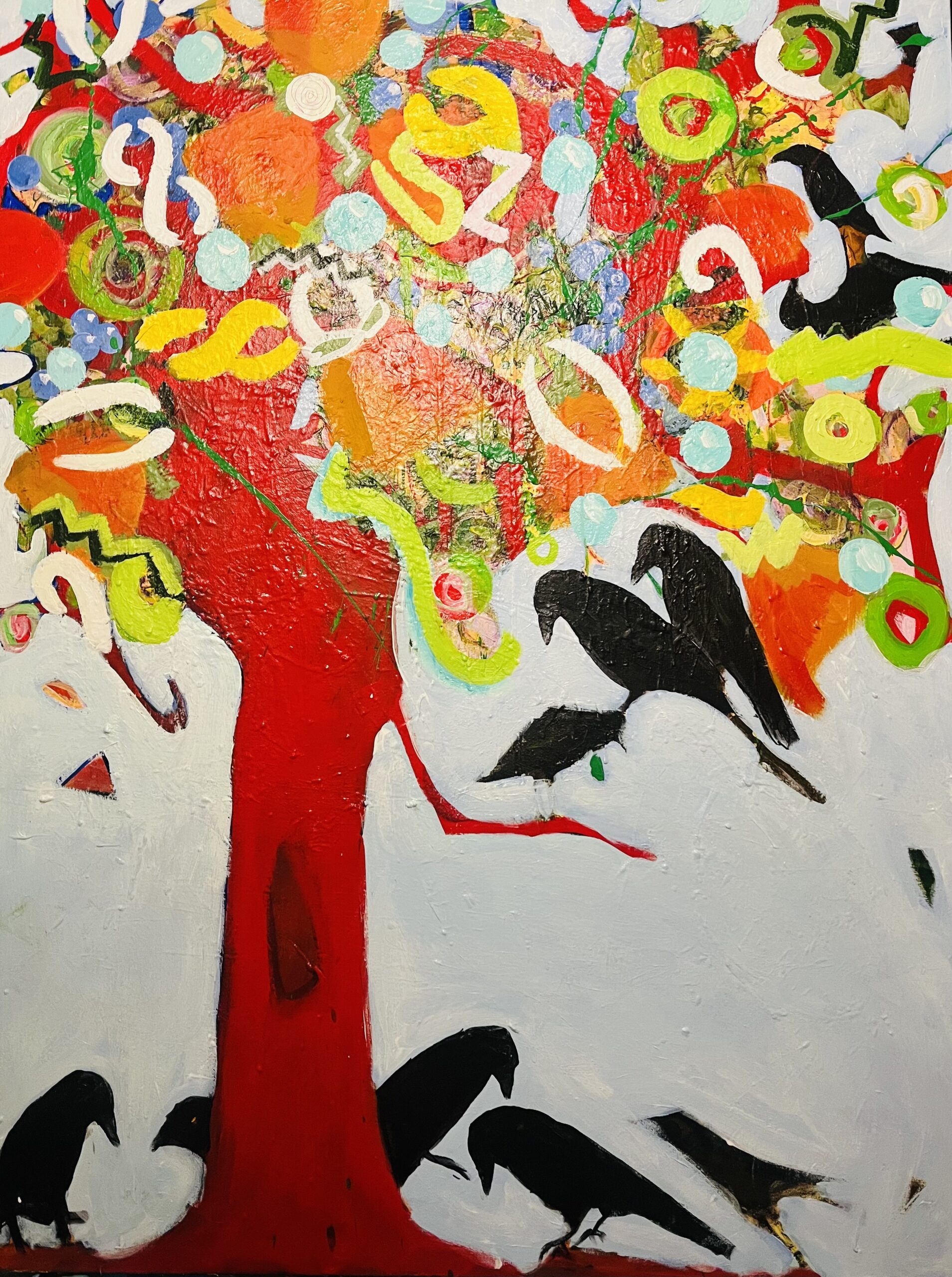 This piece began as chaos—layers of shape, line, and feeling with no clear direction. I let the colors move first, then the crows arrived. For me, they’ve always been more than birds—they’re watchers, carriers of memory, and truth-tellers. They show up when something needs to be acknowledged.