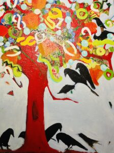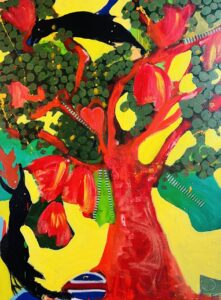 The Tree That Speaks in Symbols– the spontaneous, unfiltered nature of forms mirrors how symbolic expression can bypass verbal defenses and access deeper truths. This work invites viewers to reflect on their own internal language- those that have no words but speak all the same.